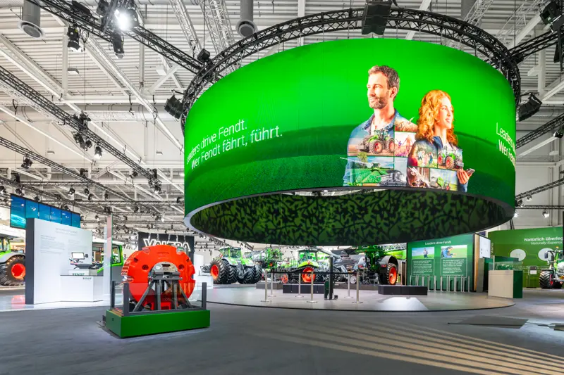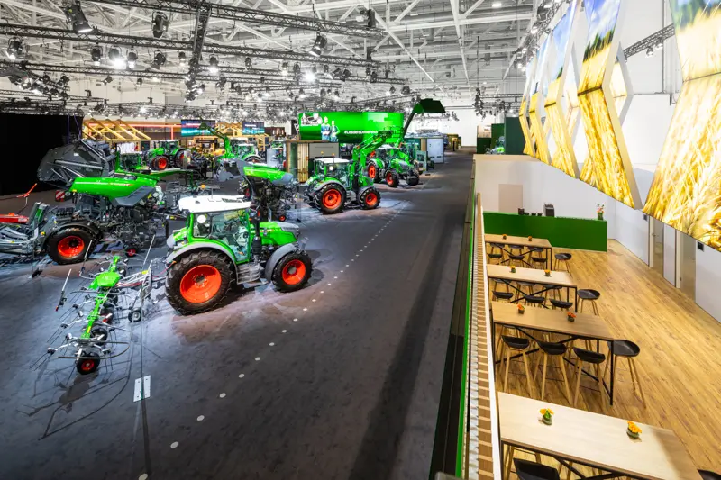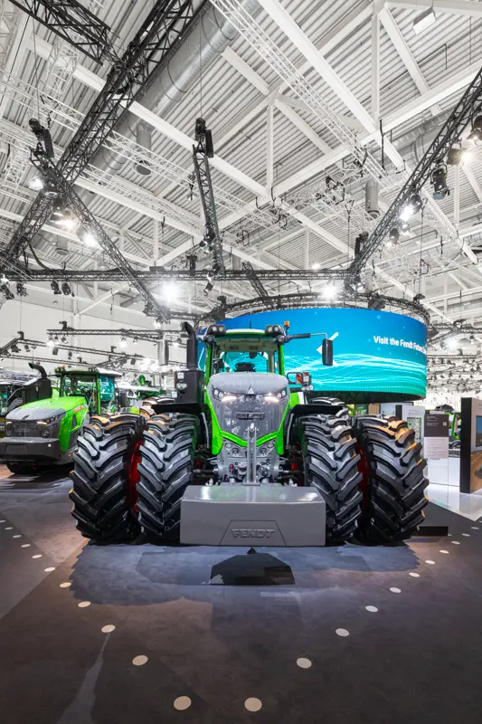 Gute Messefotografie erfordert neben einer guten und strukturierten Planung eine Kombination aus technischem Können und einem kreativen Auge. Sie soll nicht nur dokumentarisch sein, sondern auch die Atmosphäre der Veranstaltung einfangen und vermitteln. Durch eine sorgfältige Vorbereitung und professionelle Nachbearbeitung können wirkungsvolle Bilder erstellt werden, die die Messe in ihrer ganzen Vielfalt und Bedeutung darstellen. Für unseren Kunden Fendt ging es auf der Agritechnica-Messe primär um eine gute Produktpräsentation und -vorstellung, sowie um Präsenz und Kommunikation. „Im Austausch sein und bleiben“ ist für die meisten Aussteller:innen die Kernintention bei einem Messebesuch. Wir hatten die konkreten Aufgaben, die ausgestellten Produkte sowohl leer als auch besucht abzubilden und Gesprächssituationen im Kontext einzufangen.