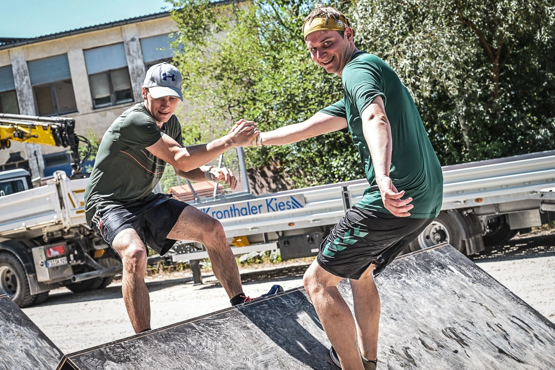 Direkt an der Startlinie mussten wir durch hüfttiefes Wasser, was bei der Hitze die erste willkommene Abkühlung bot und uns auf die restliche Strecke einstimmte. Beim Überwinden der Hindernisse kommt es vor allem auf Teamarbeit an, denn viele erfordern Kooperation mit den anderen Teilnehmern bzw. sind für kleinere Personen alleine kaum zu überwinden. Bei alldem steht der Spaß an oberster Stelle.
