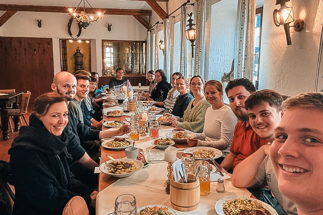 Im Anschluss gab es ein gemeinsames Essen mit 3-Gänge-Menü und einen krönenden Abschluss: ein legendäres Schrottwichteln mit überraschend guten (und sehr lustigen) Ergebnissen.
