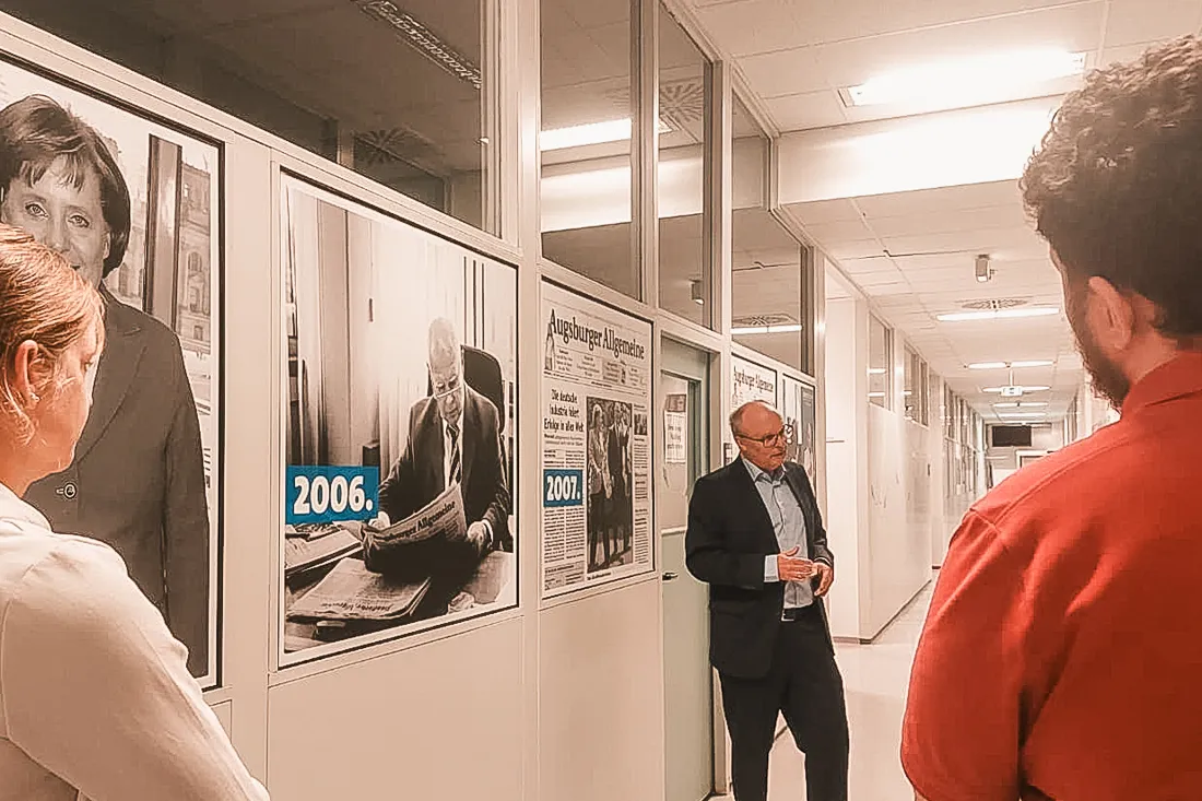 Nach dem sportlichen Teil wurde es bei einem gemeinsamen Essen erstmal etwas entspannter, bevor wir den Tag mit einer Führung durch die Druckerei der Augsburger Allgemeine ausklingen ließen. Für uns besonders spannend, da wir hier unter anderem Magazine unserer Kunden drucken lassen. Von den riesigen Druckmaschinen und Papierlagern bis zum fertigen Produkt gab es viele Einblicke und Fakten rund um den Druckprozess. Eben alles, was man sonst nicht zu sehen bekommt.