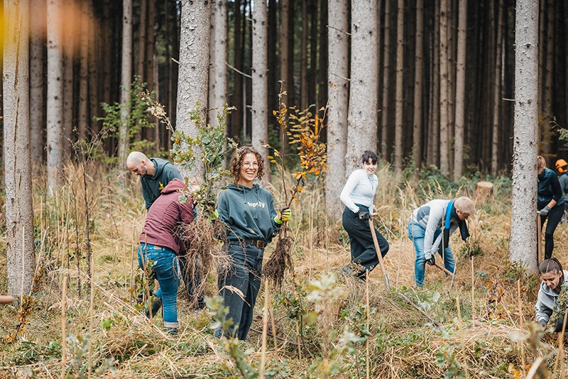 Im Herbst wurde es etwas erdiger – im wahrsten Sinne des Wortes. Bei unserer Baumpflanz-Aktion haben wir insgesamt 1.600 Bäume in den eigenen Wald unserer Werbeagentur gepflanzt.